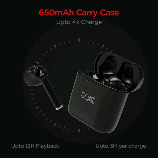 boAt Airdopes 131 - Wireless Earbuds Sleek. Comfortable. Stylish. And a Splash of Incredible Colours. Bring alive your favourite sounds with these true wireless earbuds Equipped with 13mm drivers for the magical boAt signature sound. Designed for supreme ease with Insta Wake N’ Pair technology that auto connects the moment it’s out of the case and Type C Charging. TWS earbuds to drown all the sounds you don’t need and live every moment. With a battery capacity of 40mAh for each earbud, indulge in a blissful audio experience for up to 3 hours in a go. Tap into instant wireless functionality with optimum Bluetooth V5.0 Connected every moment: Never lose a second with seamless Bluetooth v5.0 and Insta’ Wake N' Pair, that connects your phone to your earbuds the moment they leave the charging case. Charge your TWS bluetooth earphones with Type C for great speed. boAt Signature Sound for music lovers: Where sound is everything. The most immersive music experience equipped with 13mm drivers that will transport you to another world. Featherweight for comfort all-day: Feel your music, never the weight of your earbuds. Wireless earbuds designed for ease and flexibility. Upto 60 Hours playback time: Experience nonstop playback with 3 Hours of sound per charge and overall 60 Hours of playback time. Bluetooth earbuds with mic that come with a 650mAh Carry cum Charging case giving up to 4 times the charge.