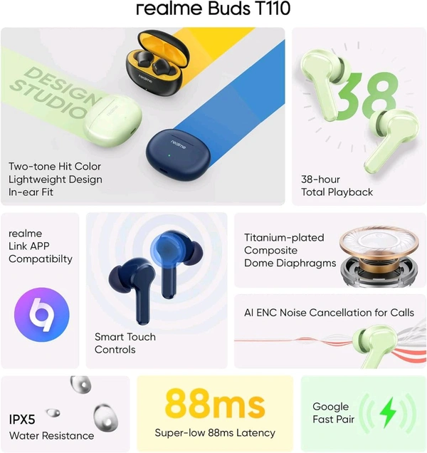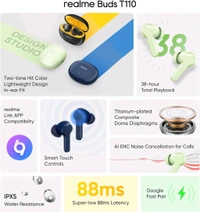 realme Buds T110 with Ai Enc for Calls, Upto 38 Hours of Playback and Fast Charging Bluetooth in Ear Headset (Country Green, True Wireless)